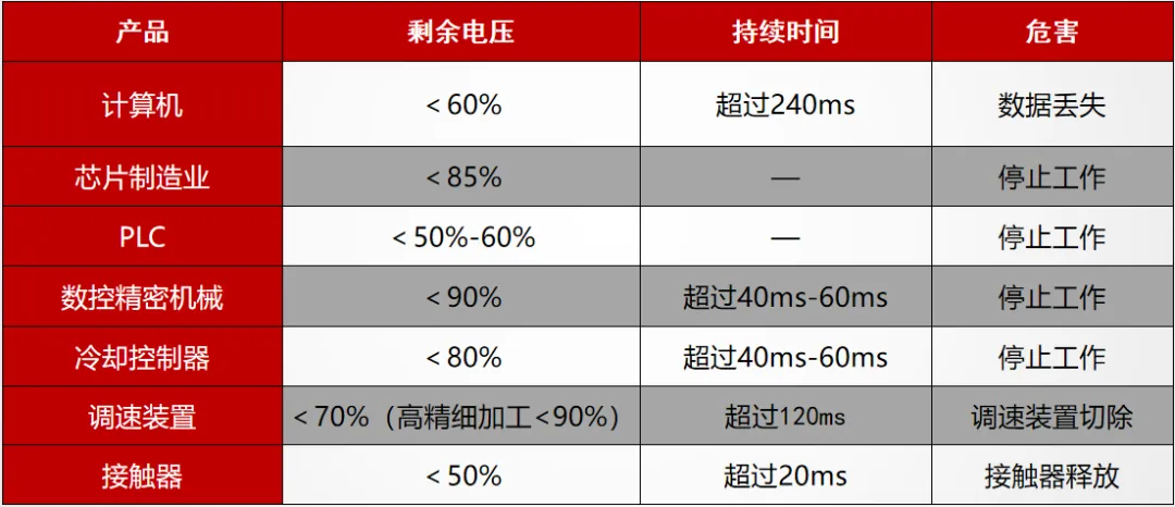电压暂降对不同设备的影响